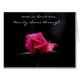 "暗闇、美しいで照りますによって…" 黒い背景(組み立てのために大きいカード、適した)の完全で赤いバラ