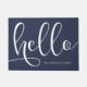 ネーミニマルビーモダン·ブルー&ホワイトのハロー·ドアマット新しい家の持ち主や新婚者に最適な贈り物。