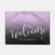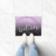 ミニマル紫モダンパーソナライズされたグリッターと黒大理石のテクスチャを特徴とするエレガントドアマット、手書きレタリング新しい家の持ち主や新婚者に最適な贈り物。