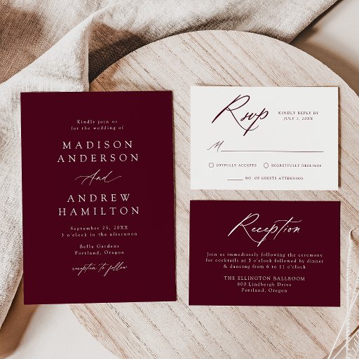 Elegant Calligraphy Burgundy Wedding Collectionデザイン: Jessica Letterman