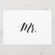 白シンプル黒エレガント書道スタイル「Mr.」のサイン結婚。マットな紙に印刷さ結婚れた「ミスター」のサインが必要でもしす素晴らし。ラスティックな職人クラフトを使ってラスタのクラフトを使ってラックスのtouchを追加したい場合はラッ伝統的ド、リネン、またはコラムンを使って何か使う必要があります感じ。の「クリックit」ボタカスタマイズンでは、エディタツールにアクセスして背景色を選違う択できる。これはフラットプリントされた5" x 7"カードのサインで、実際にエレガント写真フレームで見える。