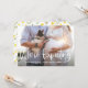 この写真妊娠の告知カードで大きなニュースを発表する。黄色い水色の花モダン模様の書道オーバーレイを特徴とする。写真と詳細を追加してパーソナライズこの写真妊娠の告知カードは、男女中立の告知に最適である。
