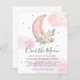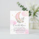 オーバーザムーンピンクの金ゴールドグリッターフローラ緑の水の色ガールベビーシャワー招待状