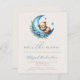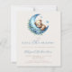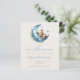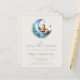 この可愛いboho赤ちゃんシャワーの招待状は、青い手書きスクリプトの「月の上飾」の単語の上に、青い花と青い三日月の上で眠っている甘い水色テディベア。文字をカスタマイズするには、スクリプト内のmom-to-beの名前と、ベージュの背景にsans serifフォントの詳細を使用する。裏面は、おむつラッフル、ベビー用の本、レジストリ詳細の宇宙を提供し、便利なQRコードのゲストはレジストリを訪問するためにスキャンすることができる。男の子の赤ちゃんのシャワーに理想的。