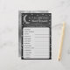 この「月を越えた」ゲームは、今年の赤ちゃんシャワーを持っている人に最適だ。このデザインは、黒板の効果背景と簡単に星を持つ銀色の月を特徴とし、テンプレート表現をパーソナライズする。単に与えこれらのゲームシートをシャワーで遊は、誰が最初に単語を奪う任意の選択の賞を勝ち取るためにゲストにアウト!回答: 1)おむつ2)ベビーシャワー3)ワイプ4)ワイプ4)ブランケット6)おしゃけ7)一辺8)スワドル9)アクティビティマット10)テエーテル11)バシネット12)ボトル13)ガラガラ