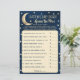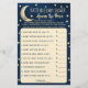 この「月を越えた」ゲームは、今年の赤ちゃんシャワーを持っている人に最適だ。このデザインは、紺色の水色の背景と簡単に星を持つ黄金の月のテンプレート表現をパーソナライズする。単与えに、これらのゲームのカードをシャワーで遊は、実際の総コストに最も近い人は、上に行かないで、あなたの選択の賞を勝ち取る!