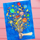「月と星与えのあいさつカードを持っていこう。愛する人に、このロマンチックな花束を送りなさい惑星、月、星と – もちろん、ロケット船。