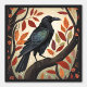 木の中に浮かぶカラス(コルヴス・コラックス)の可愛くてカラフルなフォークアートの演出は、離れ秋の思い出を思い出すような色で感じある。北欧の神話では、アイスランドのサガスやアイスランドの民間伝承は通常、この渡り鳥を賢く全てを知る使者として見せ、預言の鳥や守護者、ヘルパーとして見せる。戦闘や死亡とも関連している。彼らの存在は、しばしばオーディンの存在と戦争、詩、知恵の神としての彼の役割に関連している。