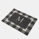 木炭とアイボリープレイドモノグラム&名前 ドアマット