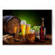 木製のテーブルにビアグラスを置いたビール樽。濃い緑の背景。©と®Bigstock® - All Rights Reserved.