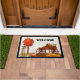 木製ワゴンと鹿を備えた秋のウェルカムドアマット ドアマット