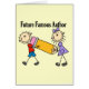 棒の姿の男の子および女の子は巨大で黄色い鉛筆を運び、文字は"未来有名な作家"に、Tシャツのかわいいデザイン、マグ、カード、トートバックおよび書くことを愛する人のために完全な他の項目を読みます!