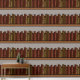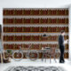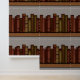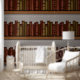 この壁紙は本棚トロンプルイルだ。(光の錯覚)金縁の本が詰まった棚を模している。本のカバーは革の模倣で、棚は木の模倣である。影と光は、のボリュームの錯視に与え使用されている。Zazzleデザイナーで明るいグレーの背景を変更できる。例えばオフィスの壁をカバーするのに最適。