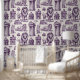 紫のインクのスタイルに獅子と像のセットを備えた豪華な壁紙