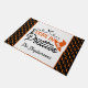 このおもしろいハロウィーンドアマットは、文字来のイメージ「私のプリティで」に魔女の帽子と家パーソナライズされた族の名前が付いています。玄関飾に最適。