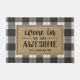 ブラックとホワイトのバッファローのプレイドを使用したおもしろい可愛いドーパーソナライズされたマットで、お客様のフロントドアに歓迎のtouchを追加縁どする。中来に「私た素晴らしち」と表示され、その下にあなたの家族の名前が表示される。