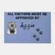 おもしろいの形式 – すべての訪問者は[dog's/cat's name]によって承認されなければならない。その他のペットを飼う。写真と文字はカスタマイズ簡単で、自分で追加できる。