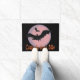 暗い夜来に黒い吸血鬼のこうもりを持つBite doormatにラベンダーのリングが付いたピンクの月を持つのまわりにと。オレンジ色の文字を読付けた来黒いドormat, "In for a Bite". 確かに不気味だが、ハロウィーンのためのおもしろいとしゃれているフェスティバルを追加する。