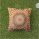 オレンジ、青銅、ティール(緑がかった色)およびタンのペルシャの花の曼荼羅のスタイルの(第16または17世紀に遡ります)装飾的な装飾用クッションのLumbarの枕。 イメージはriverme*によってこの項目で編集され、適用されました。