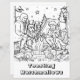 キャンピングテーマ付きの可愛いカラーページ。マシュマロを放映するキャンプファイアのまわりにに座っている家族や友人。