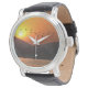 東飛んでいる湖の夕焼けの空の鳥 腕時計