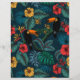 熱帯のシームレスパター葉ンで、熱帯の花と2つのトゥーカンの鳥。