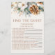 これは冬の松の木のフローラは、ゲスト赤ちゃんシャワーのゲームを見つける。*ゲストを見つける – これはアイスブレーカーゲームである。このゲームには15の質問が含まれている。各ゲストはシャワーのまわりにを行って他のゲストに会い、それぞれの質問に一致する人を見つけ、その名前を入力する。一番多い名前の人が勝つ!