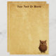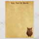 古い紙の背景画像にはかりで測重ね合わせた松円錐製のかわいいフクロウ。自分のカスタマイズ文字を追加すること。フォントと文字の色の両方を変更できる。