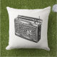 ラジオのレトロのイラストレーション。 モノグラムが付いているカスタマイズ可能な外の枕。 カスタマイズボタンをクリックによって容易にモノグラム(フォント、サイズ、色)、イラストレーションおよび変更の背景色の位置およびサイズを変えることができます。