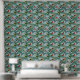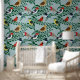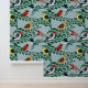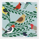 枝の上の多くの種類の鳥;ロビン、深紅色、キツツキ、ゴールドフィンチ、スパロウ、およびティール(緑がかった色)の背景のマグパイ。
