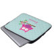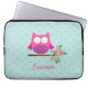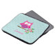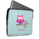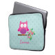 緑の葉およびショッキングピンクの花および水の水玉模様が付いている枝に坐っている小さいピンクの漫画のフクロウを特色にするパーソナライズなラップトップスリーブ。 女の子のためののためのかわいいおよびおもしろいのデザイン。 カスタマイズ可能な一流のギフト。