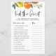 質問の答えを見つけるためにゲストと交流しなさい! |これらのおもしろいとシャワよくはしゃぐーゲームカードをイベントに追加する。このカスタマイズ可能な「ゲストを見つける」ゲームカードは、レモンとオレンジの水色イラストレーションを備えている。質問を追加してカスタマイズする。この柑橘系ブライダルシャワー推測ゲームカードは夏のブライダルシャワーやウェディングシャワーに最適だ。