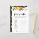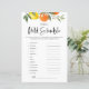 言葉を奪い取り、最も正しい勝利を得る者は誰でも! |これらのおもしろいとよくはしゃぐブライダルシャワーゲームカードをイベントに追加する。このカスタマイズ可能なブライダルワードスクランブルゲームカードは、レモンとオレンジの水色イラストレーションを特徴とする。質問を追加してカスタマイズする。この柑橘系ブライダルシャワー推測ゲームカードは、夏のブライダルシャワーや結婚式のパーティーに最適である。