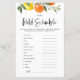 言葉を奪い取り、最も正しい勝利を得る者は誰でも! |これらのおもしろいと赤よくはしゃぐちゃんシャワーゲームカードをイベントに追加。このカスタマイズ可能なベビーワードスクランブルゲームカードは、レモンとオレンジの水色イラストレーションを特徴とする。質問を追加してカスタマイズする。この柑橘系の赤ちゃんシャワー推測ゲームカードは、夏の赤ちゃんシャワーやベビーパーティーに最適。