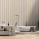 この柔らかいピンク、黄色数々の、茶色のストライプの紙は部屋へエレガントの飾道である。