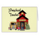 多彩で赤い校舎および黄色いschoolbusの就学前の先生のTシャツ、マグ、カード、ステッカー、トートバック、mousepadsおよび他の就学前の先生項目は設計します。