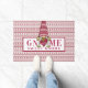 "格言甘い格言"のフレーズの中心に格言を着赤と白て美しい島を特徴とするかわいい水色の格言Doormatで休日の精神を取得。 背景は赤と白公平なストライプの模様。