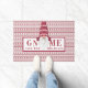 格言が美しい島を着て赤と白いる「休日のための格言」のフレーズの中心を飾った水の色の格言Doormatで休日の精神を得る。 背景は赤と白公平なストライプの模様。