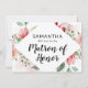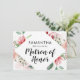 桃の水彩画の花の幾何学的なダイヤモンドフレームの形のトレンディでおしゃれなバーガンディピンクの花のブライズメイド提案カード