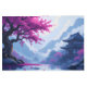 我々の桜の木日本のと家の湖の金属プリント上に湖を見下ろすさくらんぼの花(桜)の木を示し、湖の反対側に家伝統的日本のである。オリエンタルもしアート、特にテーマの壁アートのコレクターである君か知っ中国のている人に適している。