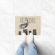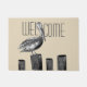白黒不完全なペリカンのイラストレーションおよびカスタムによって着色される背景を特色にするこの美しいドア・マットを持つあなたのゲストに挨拶して下さい!