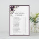 ブライダルシャワーモダンゲームエレガント「彼は言った、彼女は言った、"フローラの花束は、プラムパープルの色合いの柔らかく水の色のバラの青い緑のユーカリの植物性のと梅の紫の青い葉との青いと縁どの紫。手書きの美しい書道でアクセントを付け、黒モダンで質問をパーソナライズ。共同調整スイートの一部。https://www.zazzle.com/collections/plum_purple_water color_フローラ_ブライダル_shower-119250449992466290一致する製品のデザイザを表示す連絡る著作権Anastasia Surridge for エレガント招待状,全著作権所有。