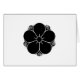 【たなくらうめ】図案は"平安紋鑑"を参考に作図(2013/6/20)した。呼称は"紋典"によった。なお、"紋之泉"では"梅花に五つ雁金"、"定紋の研究"では"棚倉梅花に五雁金"、"紋章大集成"では"梅に五つ雁金"、"江戸紋章集"では"松平家五つ雁金梅"と紋帖によって一定していない。/梅の花に五つ雁金は大名(磐城棚倉六萬四百石余)松井家(松平號を受)の副紋也。(福井万次郎著"定紋の研究"参考)/家康夫人(築山殿)と長男信康とを人質交換で救出したのは、松井忠次傑出の功労であった。次に東条城も攻め落とすと、家康は戦功に報いて、その城を忠次に与えた。そして以後松平の称号をゆるし、松平康親と名のらせた・・"蔦"のほか、替紋に"棚倉梅"がある(高橋賢一著"大名家の家紋")