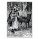 このノテカードは、木々の下の森の中の大きな悪い狼と会う小さな赤い乗馬フードのヴィンテージの黒と白のスケッチを持っている。