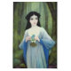 森の中の美しい女性のインクイラストレーション メタルプリント