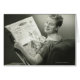 肘掛け椅子に、微笑する新聞を坐っている女性読みます(B&W) |ジョージの印| AssetID: 57539557
