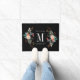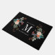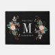 モノグラムカスタムイニシャルの両側に植物花スプレーを備えたドアマット。「カスタマイズようこそ」文字と姓。