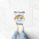 かわいいユニコーン検疫誕生日デザイン。美しく魔法の一角獣が虹を背景に雲の上に座っている。素晴らし誕生日ギフトアイディア。老いも若きも良い。