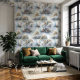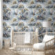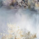夢のような島の森の木々は、朝の霧の水色の美しい白い樺の木の木々のスタンド©WhimsicalArtwork™