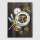 アンティークダイアル金ゴールドと真鍮ギア、茶色飾の機械的なトンボ、バックストライプのグラウンド。ステームパンク。